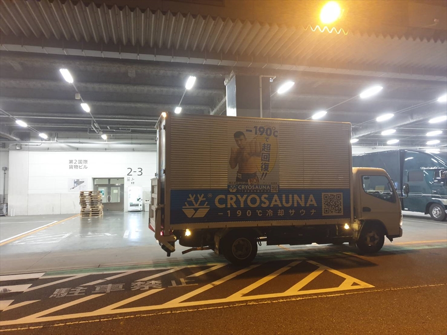 無事通関手続きを経て受け取ったクライオサウナは専用クライオモバイルで一路群馬県へ。